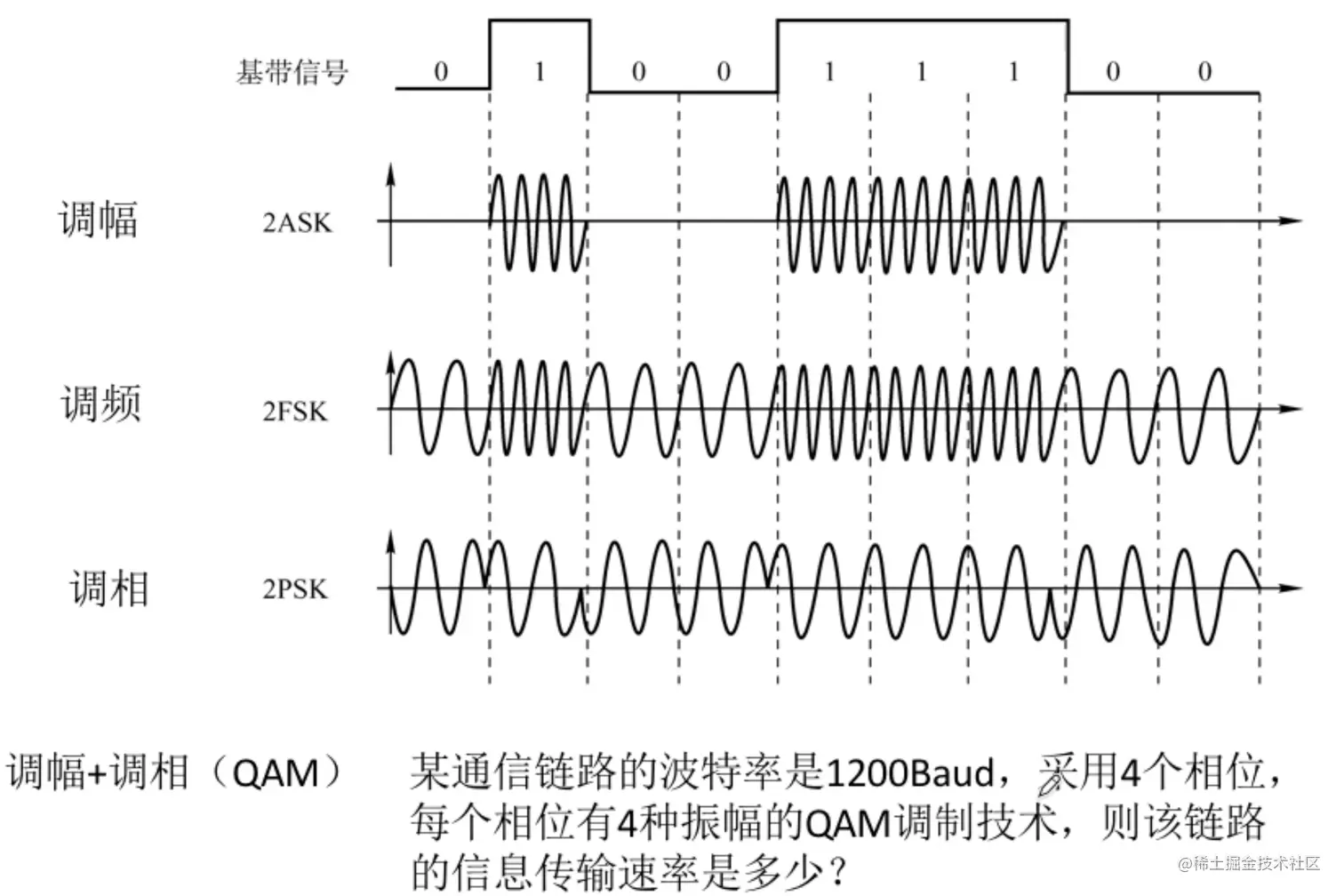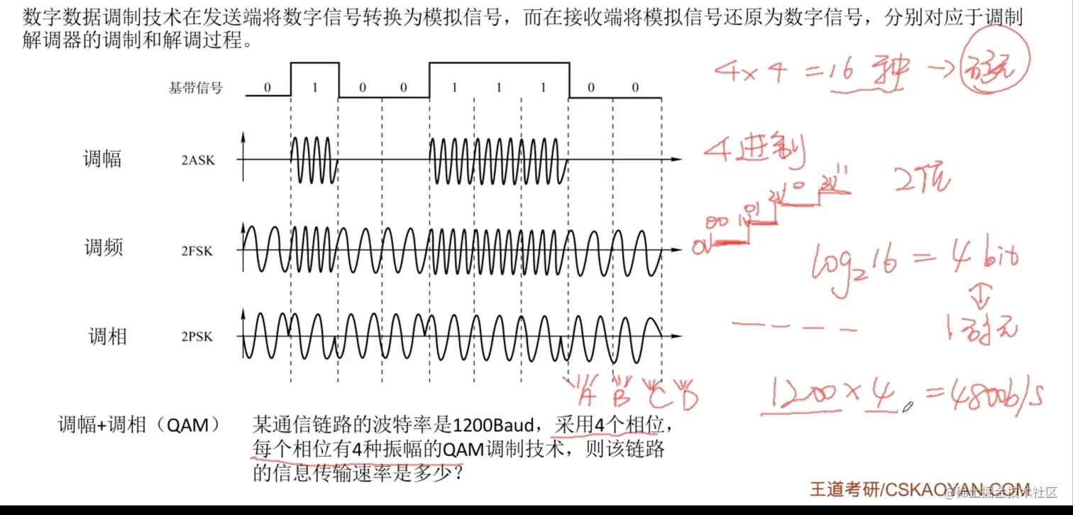 - 调相:对相位的调制,0和1分别对应不同的波形