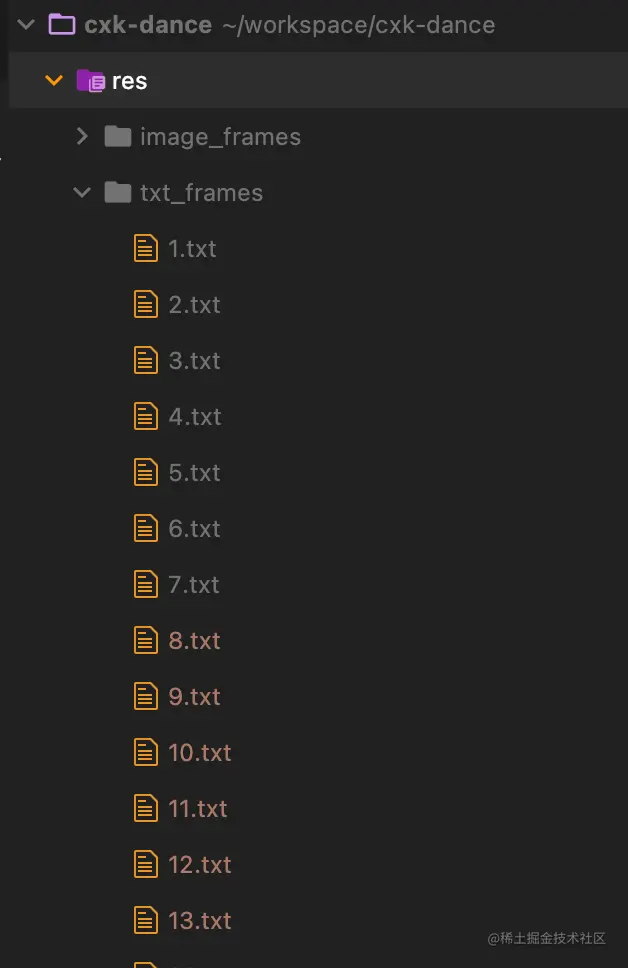 上面命令很容易理解:res/cxk-video.mov 是原视频,后面的 res/image_frames/%d.jpg 就是存放的路径,%d 表示数字.jpg。