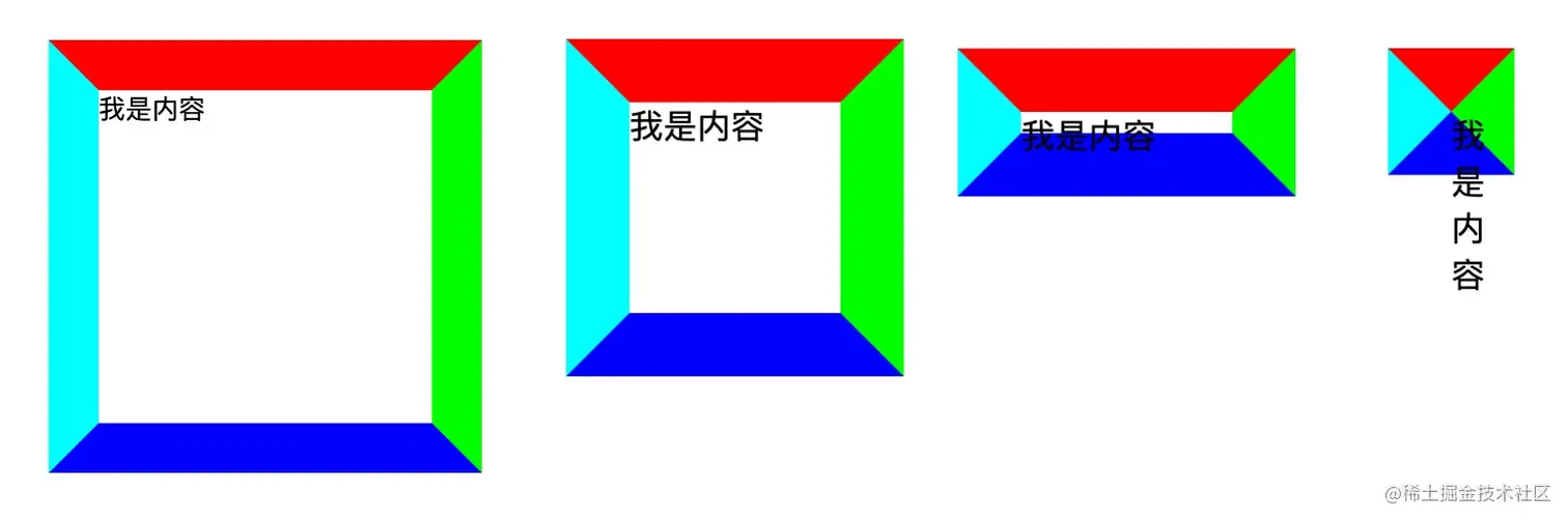 会发现每条边其实是一个梯形,然后互相接起来。那么如果 border 中内容的宽高都是 0 会怎么样呢?