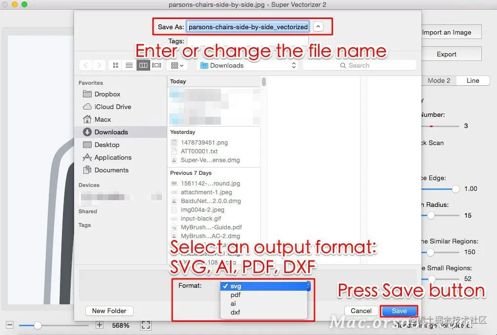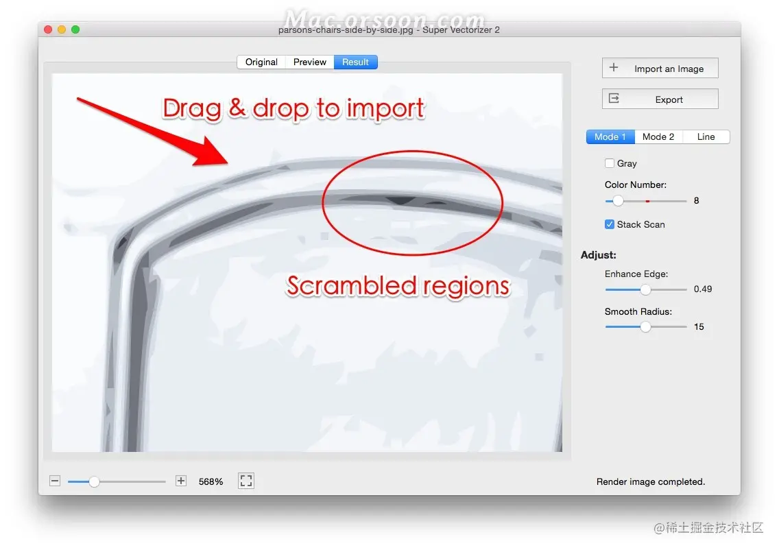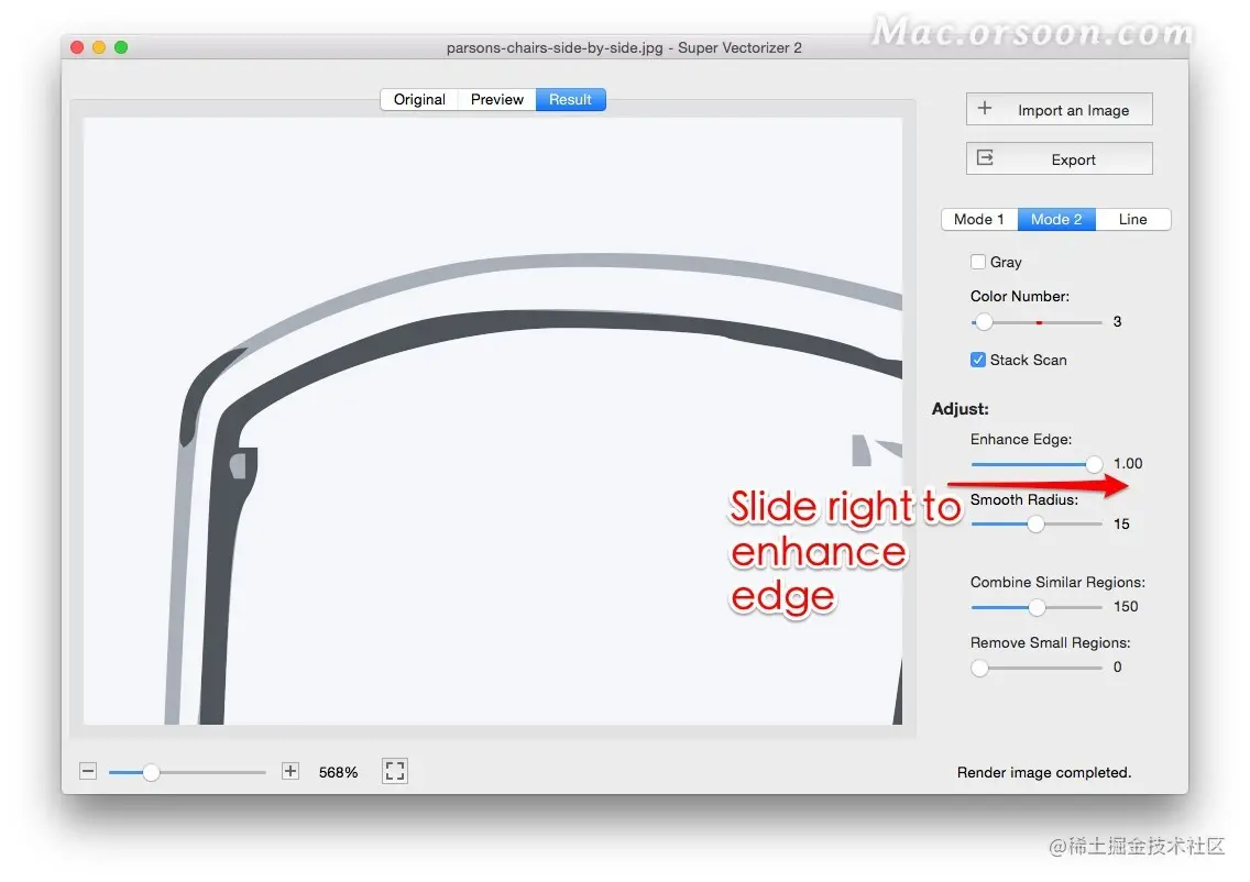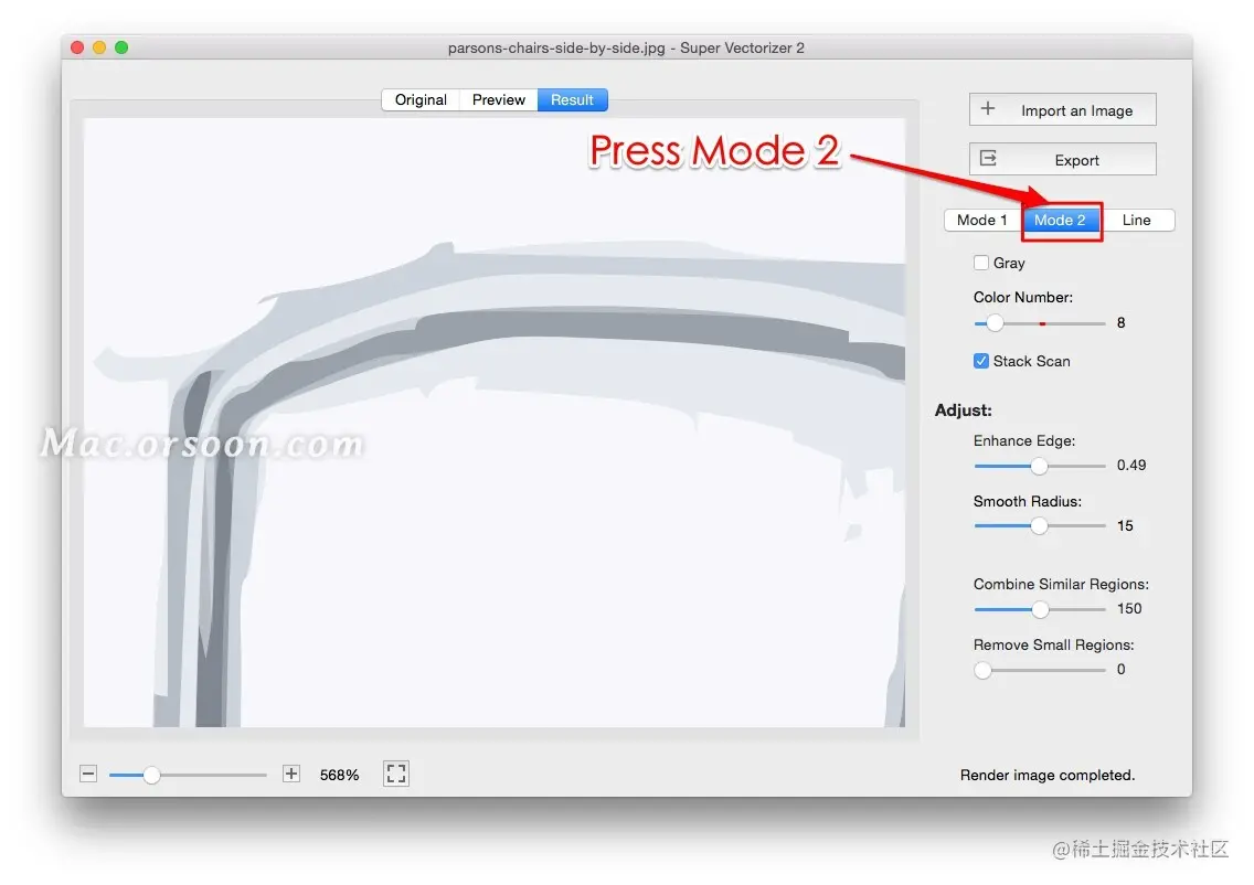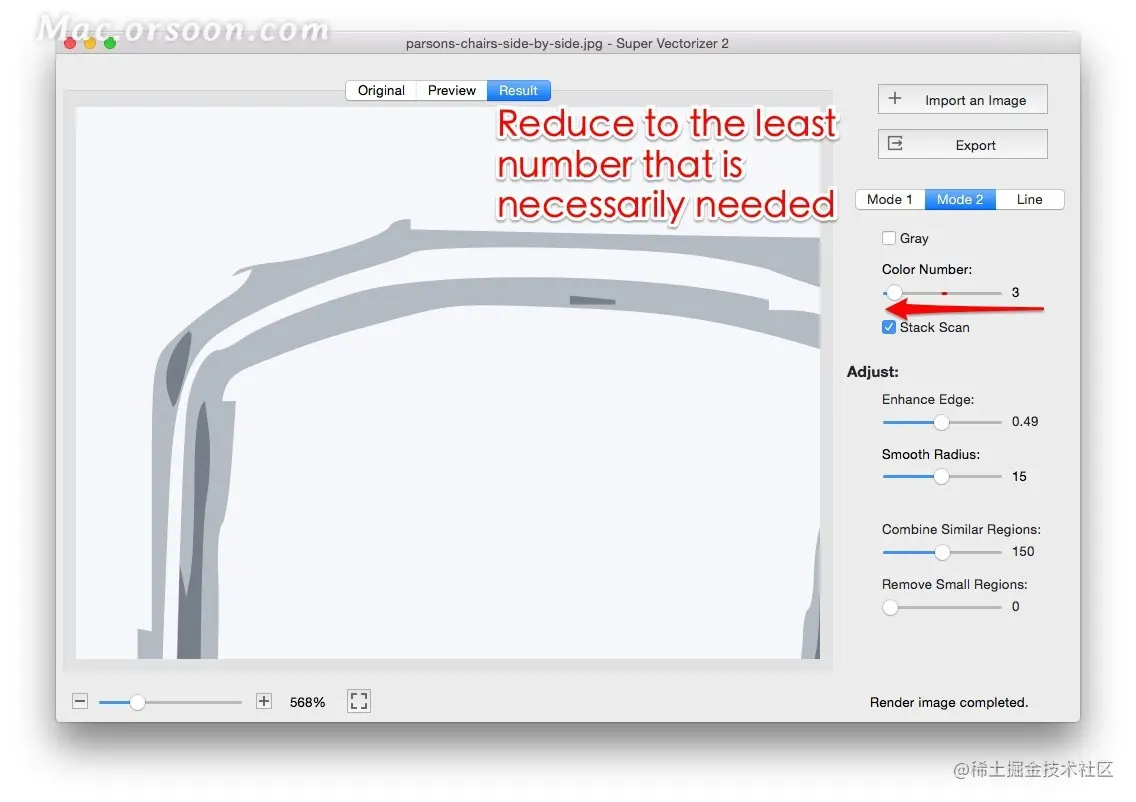 如何Super Vectorizer从Mac 上的图像中删除多余的颜色区域? Mac迪迪卫 2021-07-06 294 阅读1分钟 如何去除多余的颜色区域? **步骤 1.在 Mac 上打开 Super Vectorizer,**导入您的图像 **步骤 2.**切换到模式 2 **步骤 3.**减少颜色数量 **步骤 4.**增强边缘 **步骤 5.**删除小区域 **步骤 6.**导出您的结果