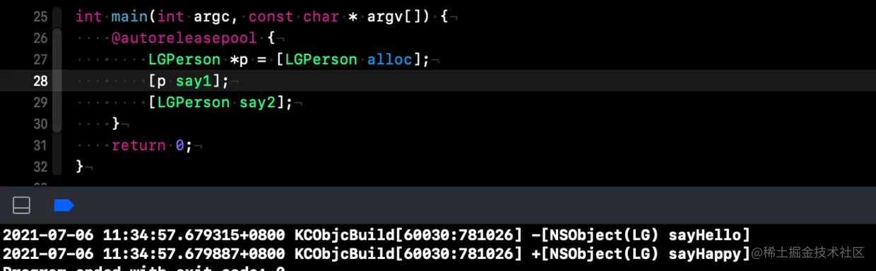 resolveClassMethod 方法,并判断 sel 为 say2 方法的时候,设置 imp 为指向 sayHappy 方法的 sayHappyImp,最后我们调用 say2 方法的时候调用了 sayHappy 方法。