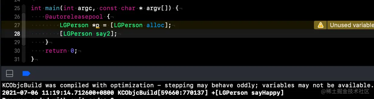 IMP sayHappyImp = class_getMethodImplementation(objc_getMetaClass("LGPerson"), @selector(sayHappy));