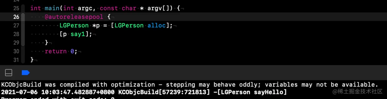 我们定义一个 LGPerson 类,在 .h 文件中声明 say1 方法,而 .m 文件只是重写了 resolveInstanceMethod 方法并且打印函数信息。