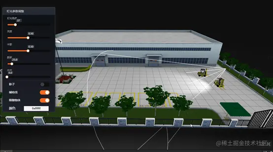 但是要注意数字孪生可视化场景中聚光灯过多会影响渲染性能。