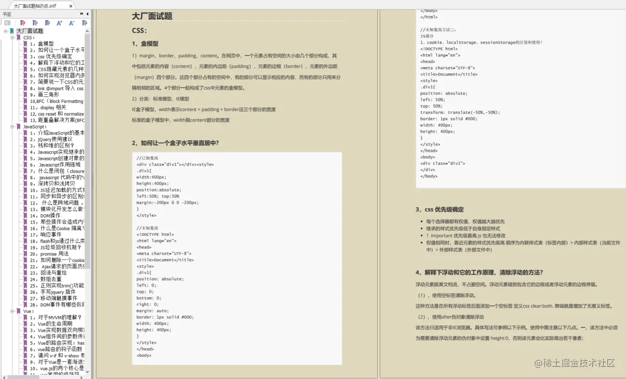 那么在找工作或跳槽刷面试题是必不可少一环节,小编为小伙伴们准备了三份面试题文档,分别是前端面试题解析文资料、React面试题总结资料、大厂面试题知识点资料,每份资料里的面试题有着详细的答案,有的题目会附上代码,这样看会对题目有个更清晰了解,综合代码看对题目记忆更深刻。