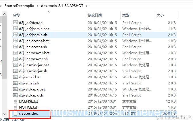 2.3,把解压获取classes.dex文件,复制到dex-tools-2.1-SNAPSHOT文件夹下;