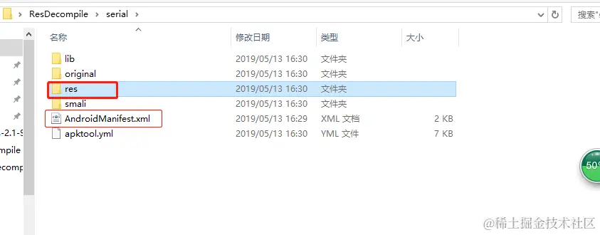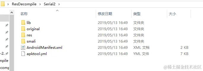 3.4,在ResDecopmile文件夹下自动生成了serial文件夹,既是反编译后生成的文件夹;打开serial文件夹即可看到我们想要的资源文件夹和清单文件了;