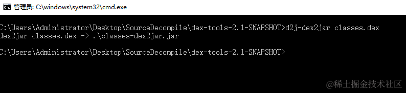 2.5, 在上图命令行窗口输入 d2j-dex2jar classes.dex 命令