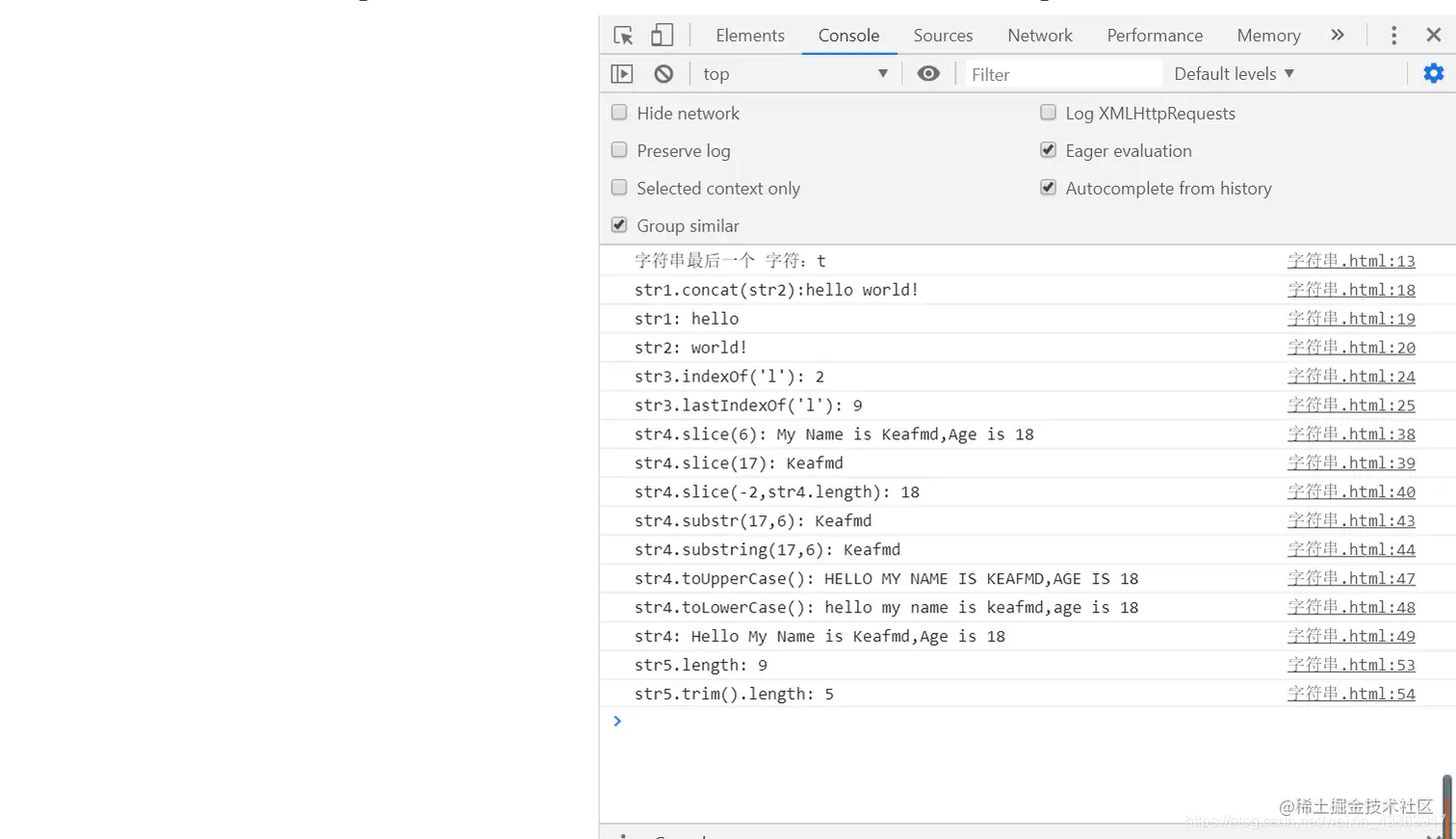 | lastIndexOf() | 返回字符串中检索指定字符最后一次出现的位置 |