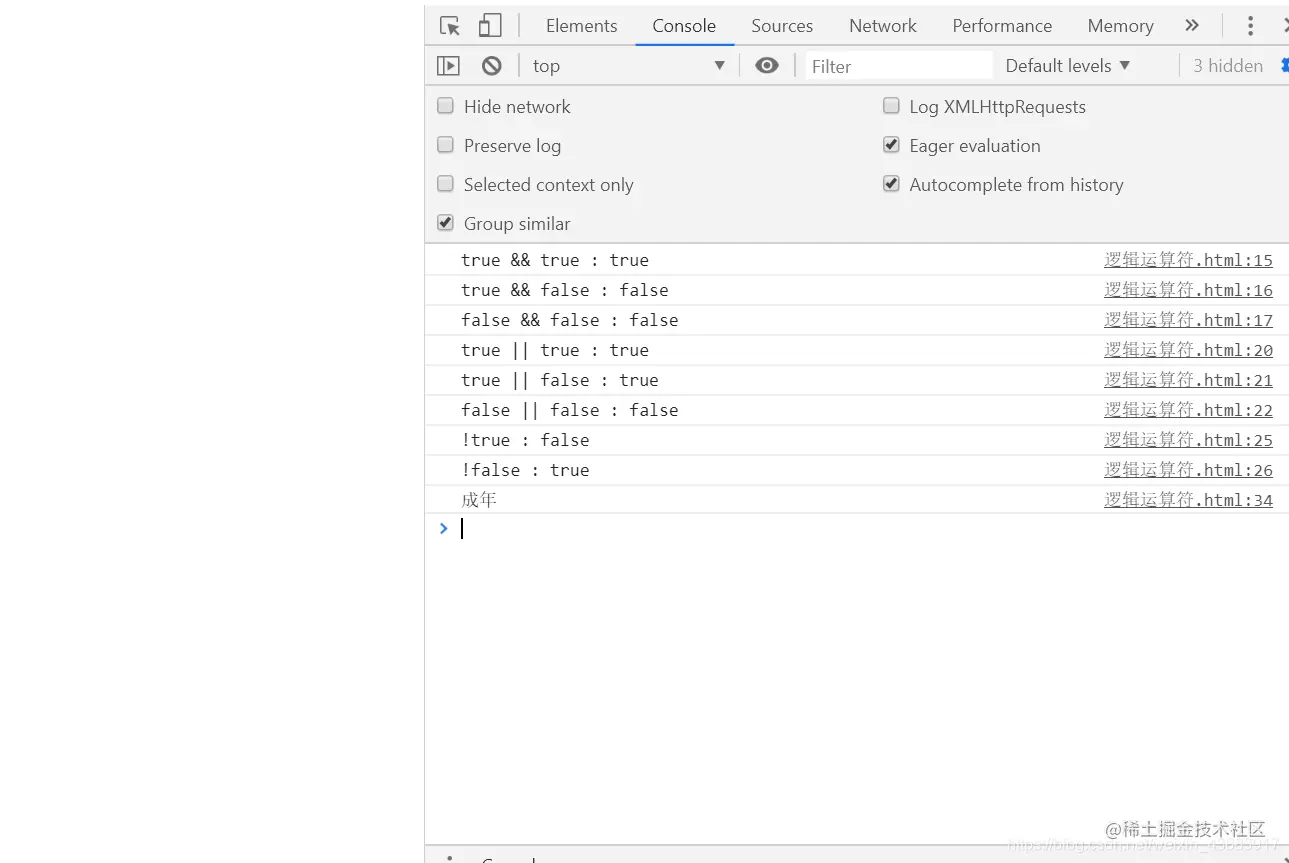 true :取值 true 、非 0 的数字、非空字符串 (字符长度为 0)