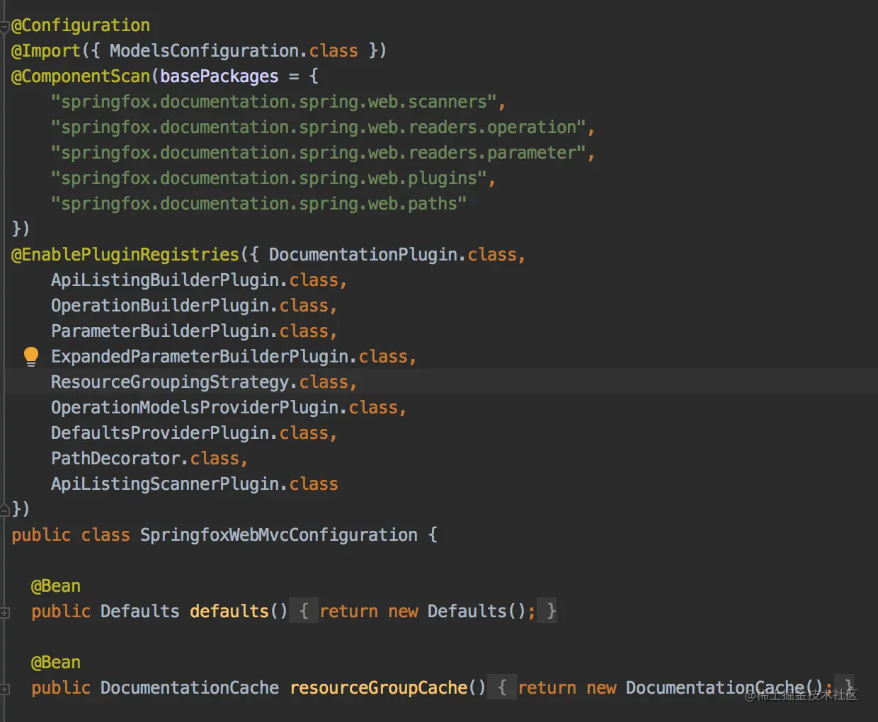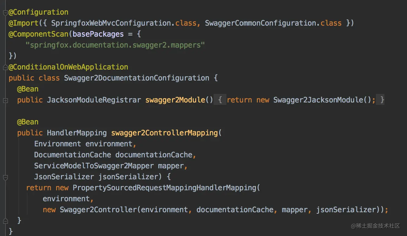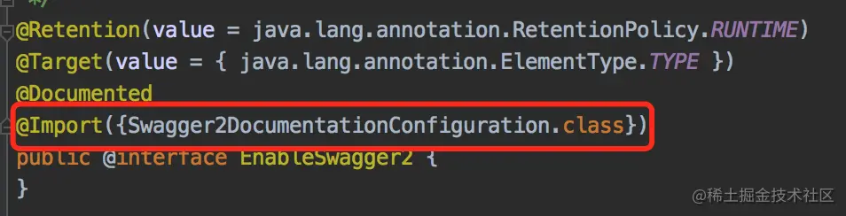 其中@EnableSwagger2注解中导入了Swagger2DocumentationConfiguration类。