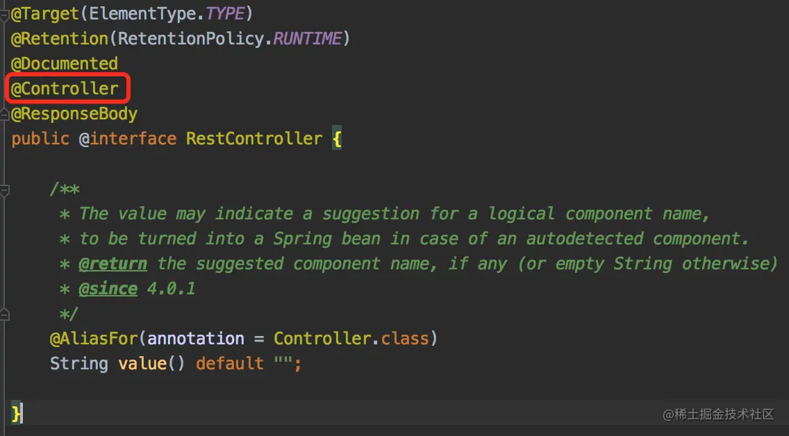 此外,除了上述四种@Component注解之外,springboot还增加了@RestController注解,它是一种特殊的@Controller注解,所以也是@Component注解。