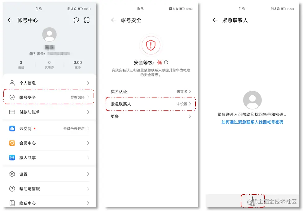 绑定紧急联系人,让您在使用华为帐号的过程中更省时,更省力,也为您的帐号安全增加了一道无形的防线。