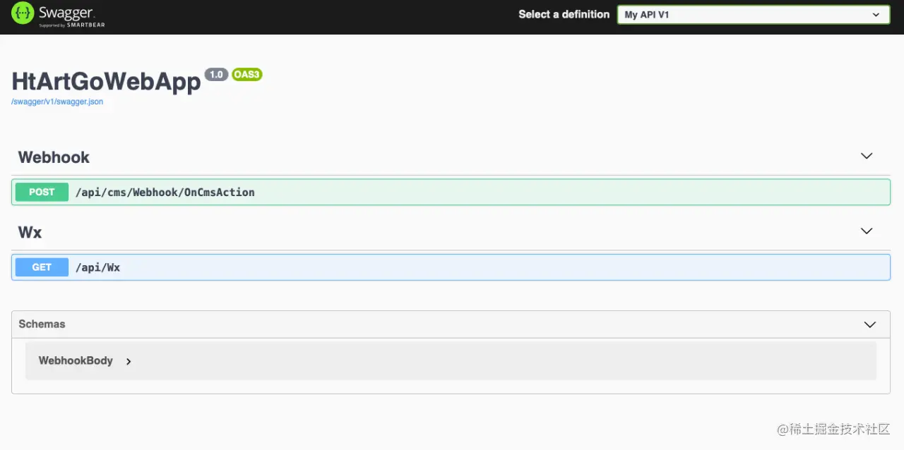 app.UseSwaggerUI(c=>{c.SwaggerEndpoint("/swagger/v1/swagger.json", "My API V1");});