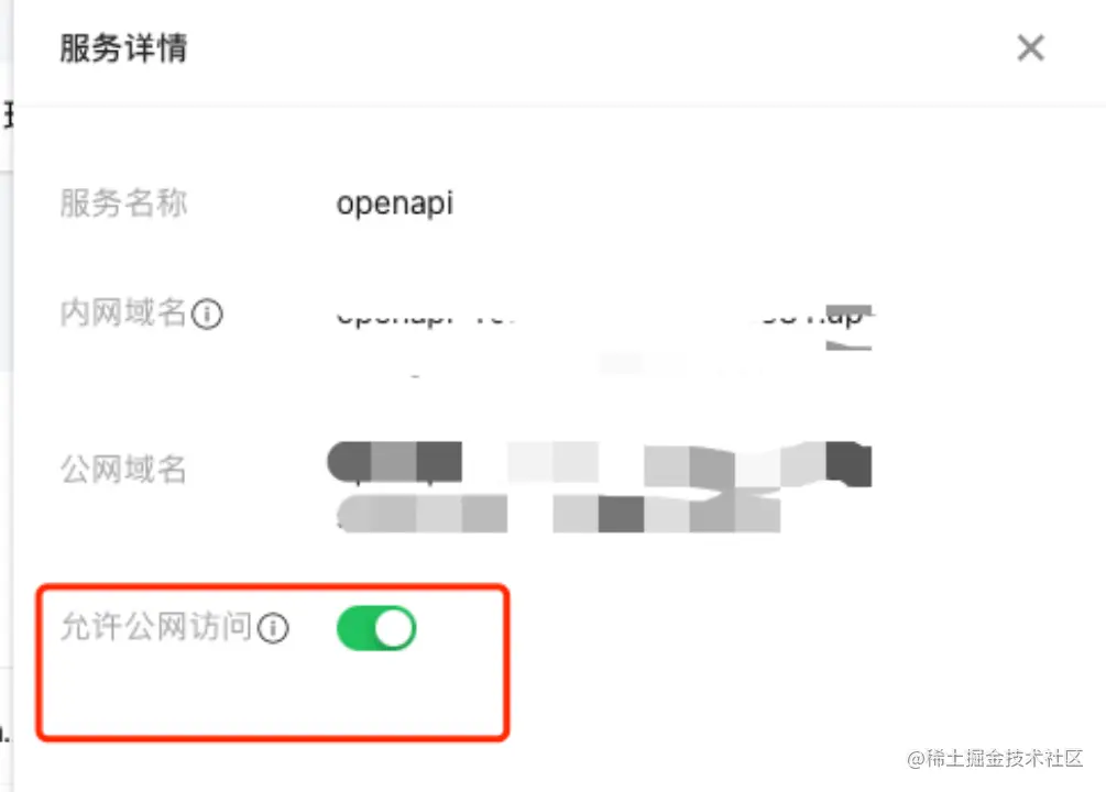 小tips:大家在使用 OpenApi 接口的时候测试开发中可以把公网域名访问打开,线上环境启动内网访问就可以,这样相对比较安全。因为你调用 OpenApi 的接口不再像之前需要换取 Access_Token 啦,公网暴露风险大。