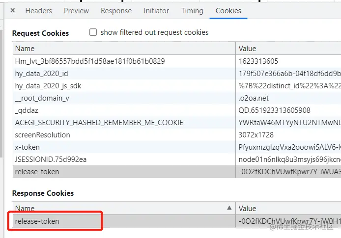 然后重启服务器,全部关闭浏览器,或清空浏览器cookies后,重新登录。这时我们可以看到,token的名称已经更换了。
