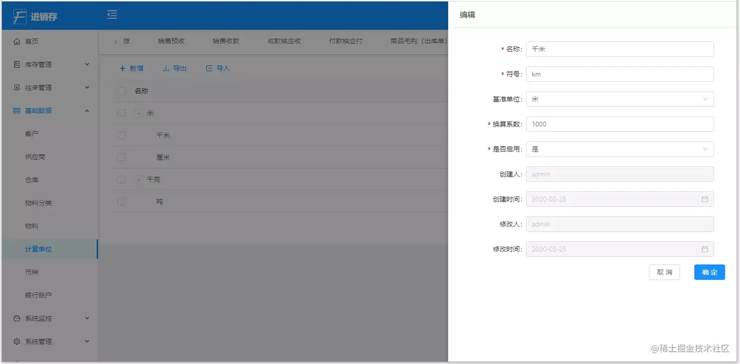 │ ├─仓库、物料分类、物料、计量单位