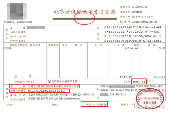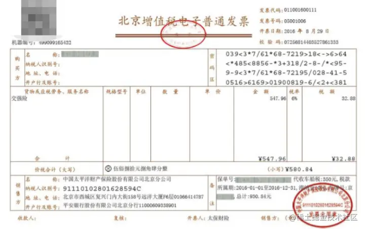 下面以其中一张图片为例,讲解如何提取目标内容:金额、名称、纳税人识别号、开票人。
