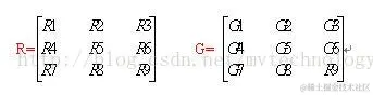 3 * 3 的像素区域R 与卷积核G 的卷积运算: