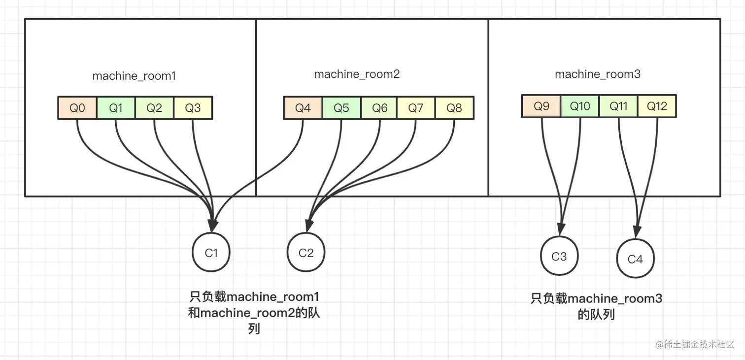 1. 分别给MessageQueue和Consumer按机房分组