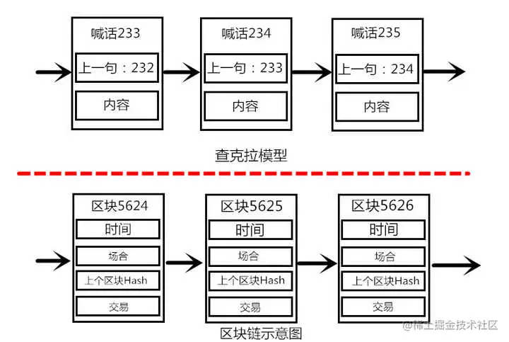 图4:查克拉模型和中本聪第一版区块链协议对比图