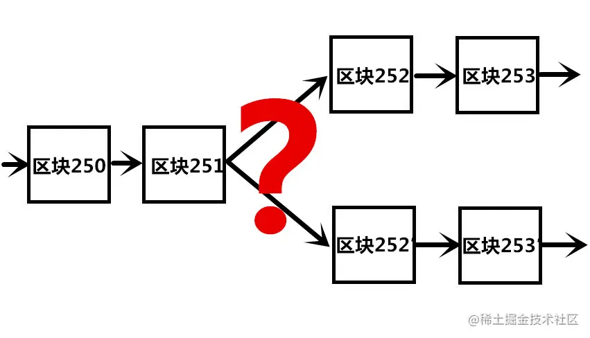 这会导致怎样的情况呢?按照我们的设想,应该每个人的小本本上记录的东西都是一样的,都是一条可以把所有信息串联起来的链条。但是在这一刻,他们小本本上记录的东西不一样了!这还玩毛啊?以后还怎么确定交易和信息的真实性!?