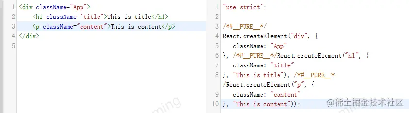 通过babel把 JSX 标签转化成了 React.createElement 调用
