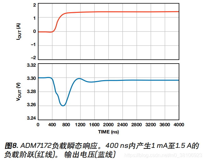 输入电压瞬态响应是指输入电压阶跃变化时的输出电压变化。它与LDO 控制环路的增益带宽以及输入电压变化的大小和速率有关。