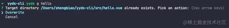 yyds g <路径>可以快速生成页面- 如果指定路径下有重名的文件,需要提示是否覆盖,支持用户手动选择覆盖