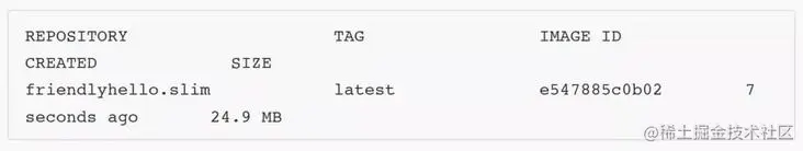 docker-slim 工具对胖镜像进行一系列的检查、测量,最终创建一个瘦版本的镜像。让我们看看这个减过肥的大小吧。
