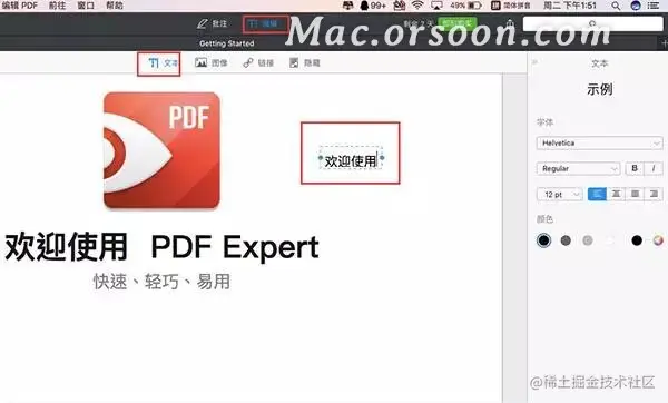 选择“编辑-文本”,单击你想添加文本的空白处地方,填入文本,然后在侧边栏修改文本的格式。