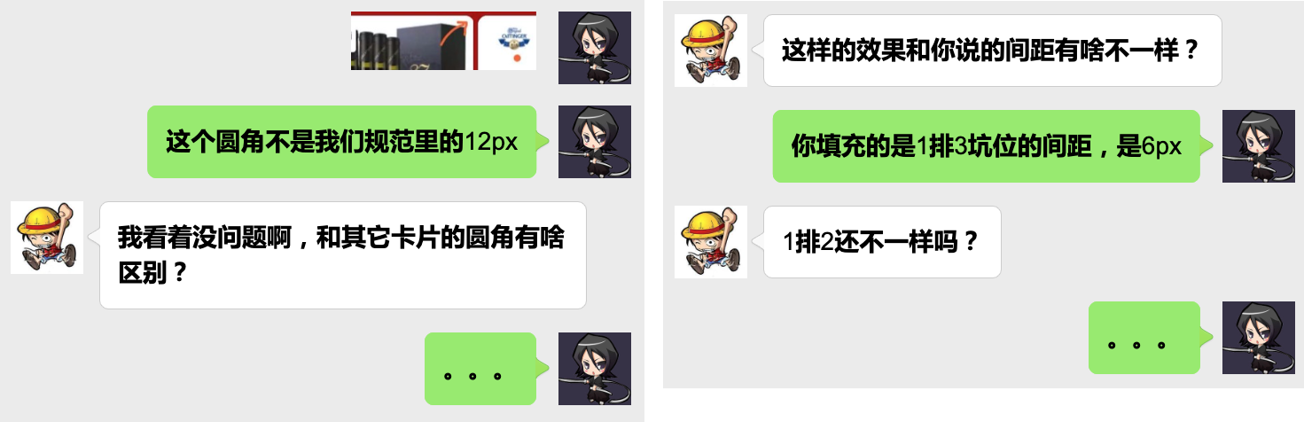 🌰 1号栗子:小明作为设计系统的维护者,制定了产品里栅格系统里网格的基数为4px。小飞是新来的一名设计师,在一个新页面A里将卡片的上下间距设置为16px。而小黑在一个历史页面B的设计里卡片的上下间距是12px。由于小明在设计系统里并没有制定对于这种细节的规范,导致了两个页面在实现时间距的不一致。