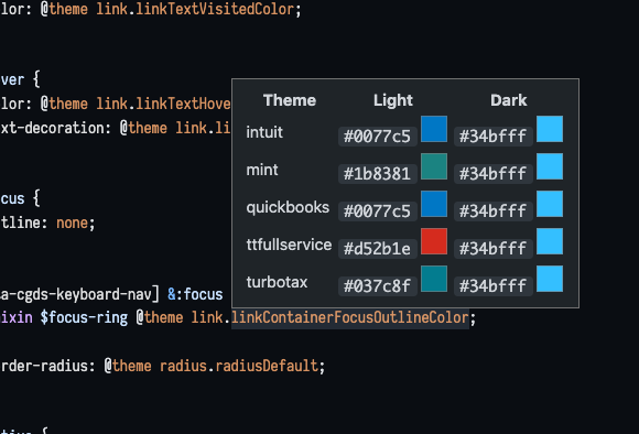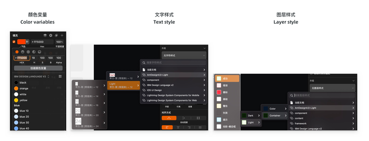 - 保证了生产环节的一致性,在编码过程中,样式变量可以以自动提示的方式确保使用场景的明确性,而不只是一个无语义的value
