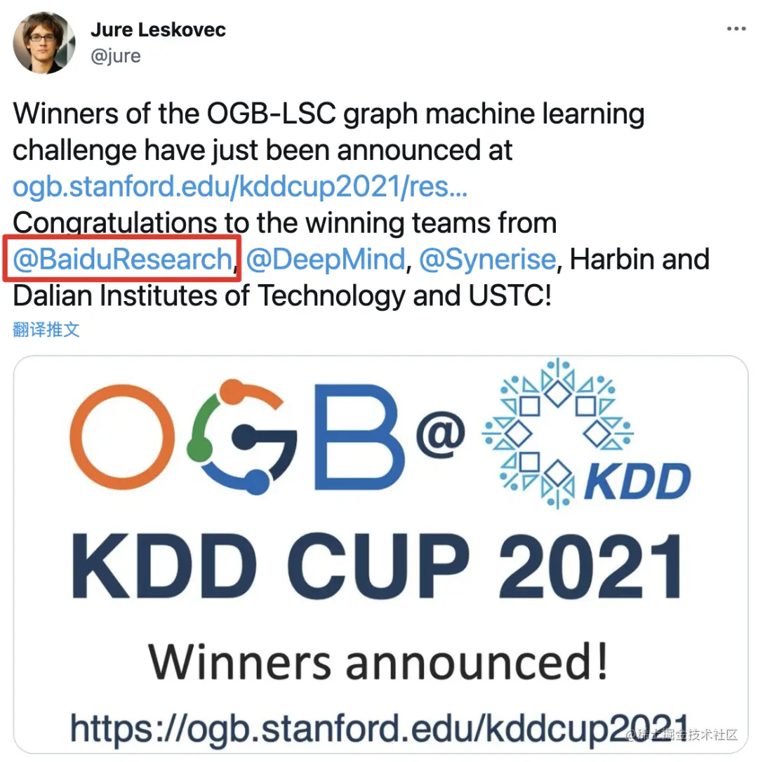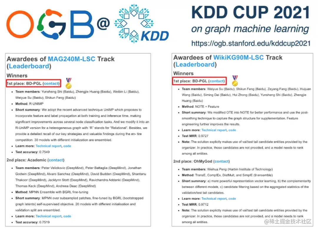▲ 飞桨 PGL 夺冠页面:ogb.stanford.edu/kddcup2021/…