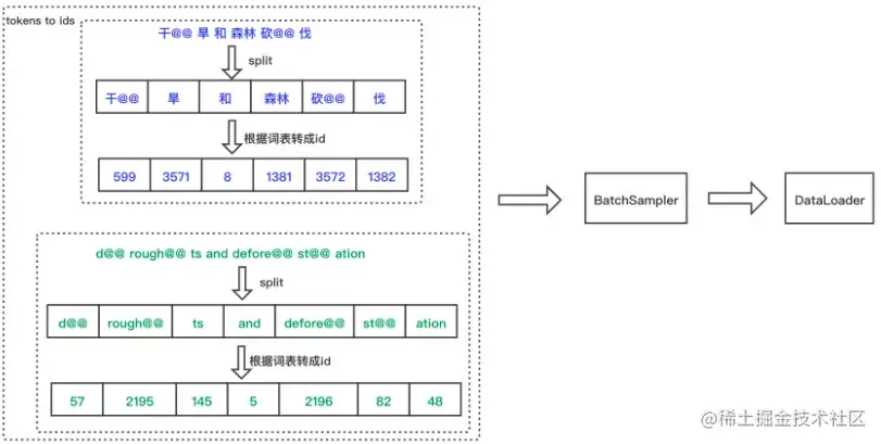 # 通过Dataset的map方法将样本token转换为id;通过Dataset的filter方法过滤掉不符合条件的样本