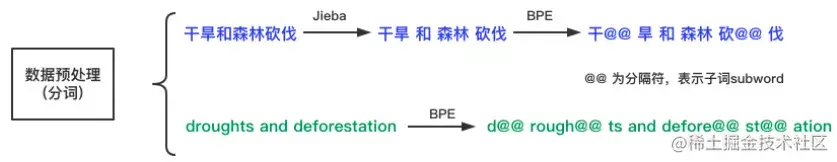 # 数据预处理过程,包括jieba分词、bpe分词和词表。