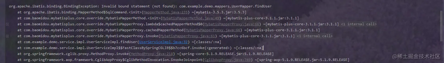 Servlet.service() for servlet [dispatcherServlet] in context with path [] threw exception [Request processing failed; nested exception is org.apache.ibatis.binding.BindingException: Invalid bound statement (not found): com.example.demo.mappers.UserMapper.findUser] with root cause: