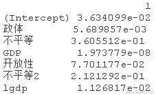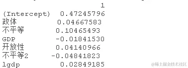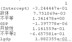 # 得到系数估计值(注意,我们真正关心的是β值,而不是S.E.)。