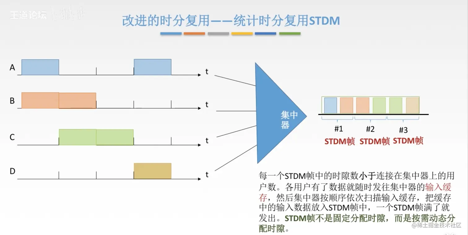 - 时分复用和统计时分复用的数据帧不是链路上的数据帧,而是物理层上传送的比特流划分的帧