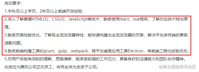 相对于传统的软件工程师面试而言,前端工程师面试对算法以及计算机底层考察程度较低。面试的时候一般会着重考察错综复杂的前端基础知识,比如 HTML ,CSS ,JS 等。同时会根据各个面试公司的技术栈去侧重一些应用上的技术,比如小程序,react,vue 等等。