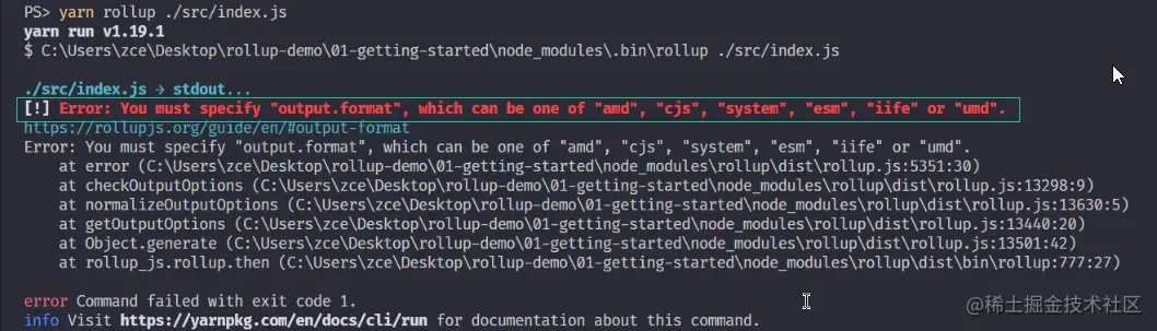 通过 --format 命令行参数修改输出格式 执行 Rollup 打包