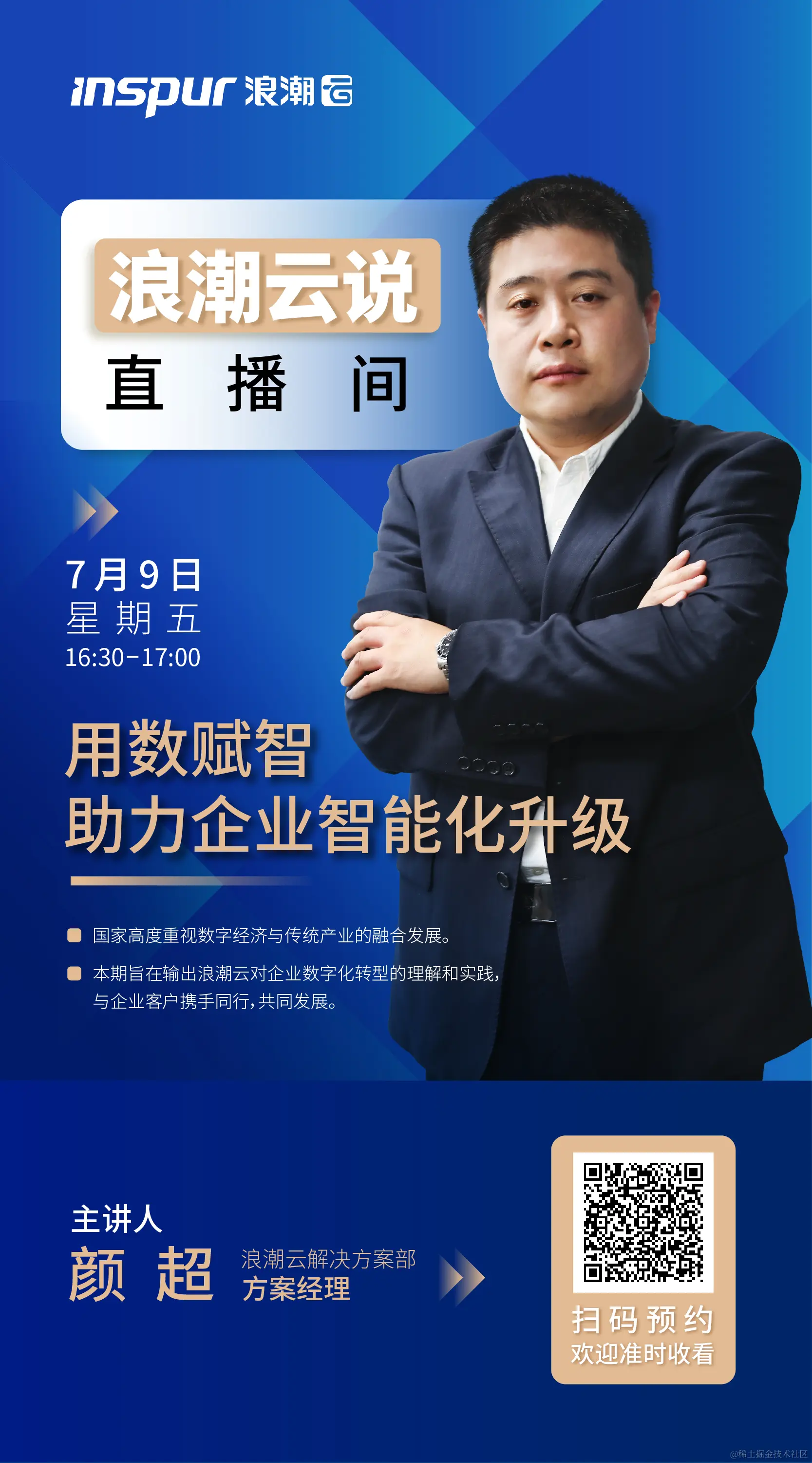 就在今天,浪潮云说第二期来啦 已注销 2021-07-09 144 阅读1分钟 用数赋智 助力企业智能化升级 国家高度重视数字经济 与传统产业的融合发展 本期旨在输出浪潮云对企业数字化转型的 理解和实践, 与企业客户携手同行 共同发展