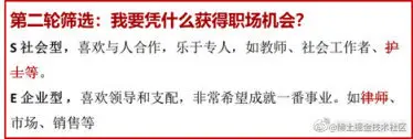 首先要清楚自己的能力,可以遵照上面的三个方面去自我梳理,梳理的时候回想自己成长过程中的成就事件,或者借助于能力测评工具。然后是目标岗位的能力识别,最后是看匹配程度,完成筛选。如下图所示,因为不是医学和法律相关专业,所以护士和律师被删除,这样就缩小了范围。