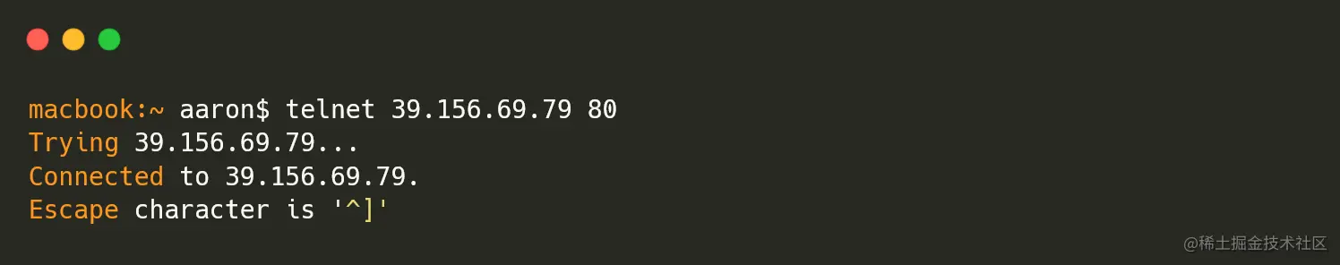 macbook:~ aaron$ telnet 39.156.69.79 80