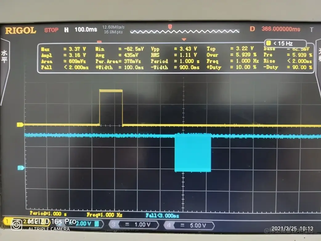 黄色:PPS,上升沿为整秒零时刻。
