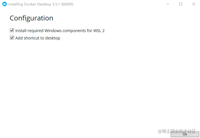 这里咱们安装的docker桌面版,下载好之后,直接双击打开进行安装。其过程基本都是下一步,最后等待安装完毕。