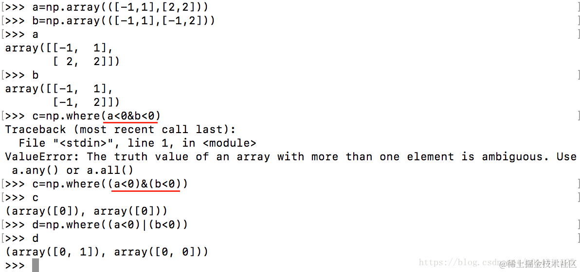 与: numpy.where((con1)*(con2))或者用&