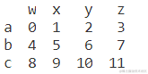 b =pd.DataFrame(np.arange(12).reshape(3,4),index=['a','b','c'],columns=['w','x','y','z'])