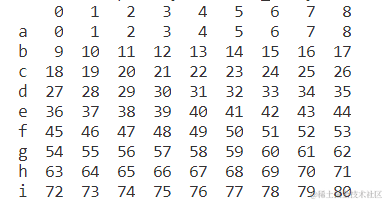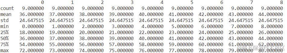 e =pd.DataFrame(np.arange(81).reshape(9,9),index=list("abcdefghi"))