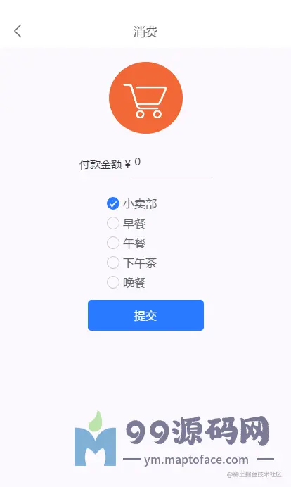 **目前待完善消费端,消费端为扫描用户出示小程序中的二维码付款完成交易,消费端可以为固定设备,显示每个人当天当前时间点的消费记录,以食堂为单位